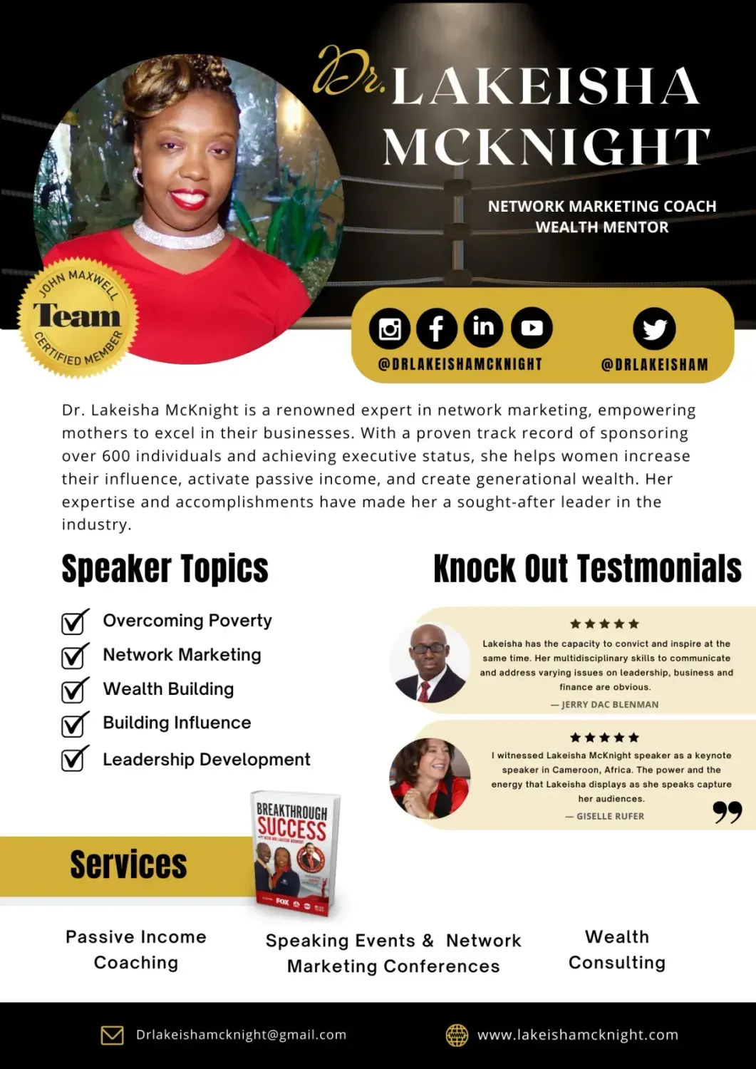 Dr. Lakeisha McKnight is a certified John Maxwell speaker, trainer, and coach who delivers wealth-building strategies and leadership empowerment for Kingdom women entrepreneurs.